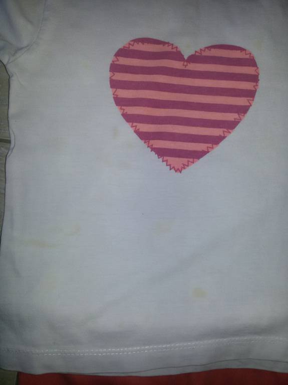 Скорее подойдут для дома и дачи, на белой футболке пятнышки от сока, на малиновой малюсенье пятнышки; на брючках и шортах незаметные пятнышки. Дырок нет