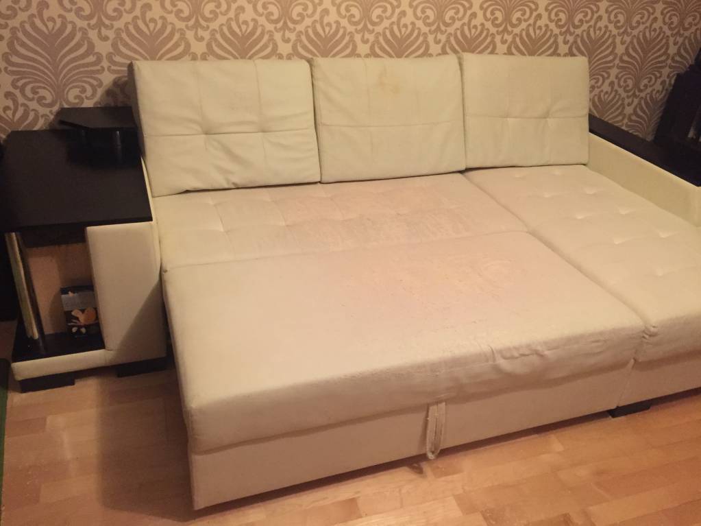 Отдам угловой диван б/у 5 лет, обивка осыпается на спальном месте и подушках. Но если подстелите одеяло спать очень даже удобно.