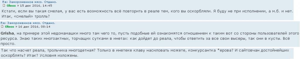 Oleos, Если указали телефоны и адрес ,можно указать свой телефон и договориться о встрече. Или написать в личную почту .Сюда я больше писать не буду. Хотя вы и оскорбляли , но люди отзывались о вас хорошо . С наступающим , Вас, Новым годом ! Помощи, после всего написанного , она с этого сайта не хочет и я её понимаю . Хотите, договаривайтесь о встрече я тоже подойду , только укажите об этом заранее .С 4 по 8 января меня не будет в Москве. Ещё раз с Новым годом.!