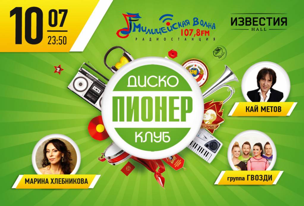 10 и 11 июля в 23.50 Клуб ПИОНЕР (в зале ИЗВЕСТИЯ HALL) и радиостанция Милицейская волна представляют легендарные вечеринки Диско 80-90