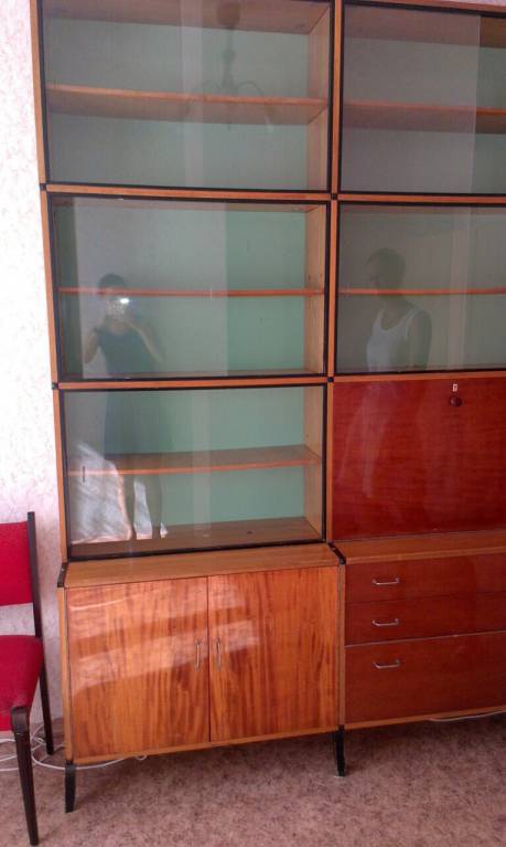 Юлия, могу отдать вот такие книжные полки от мебельной стенки (еще есть два одежных отделения). Две секции, размер каждой 110х180х40. Все в хорошем состоянии, сделано качественно. Все полки и стекла на месте.