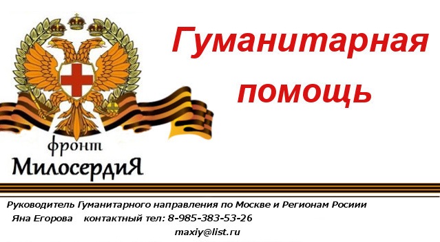 Волонтерское движение "Фронт Милосердия" просит помочь в сборе гуманитарной помощи. Возим 2 раза в месяц груз в ЛНР и ДНР. Помогаем детям Донбасса-это преоритетное направление а так же пенсионерам с лекарствами.Вся отчетность предоставляется во всех соц сетях группа "Фронт Милосердия"