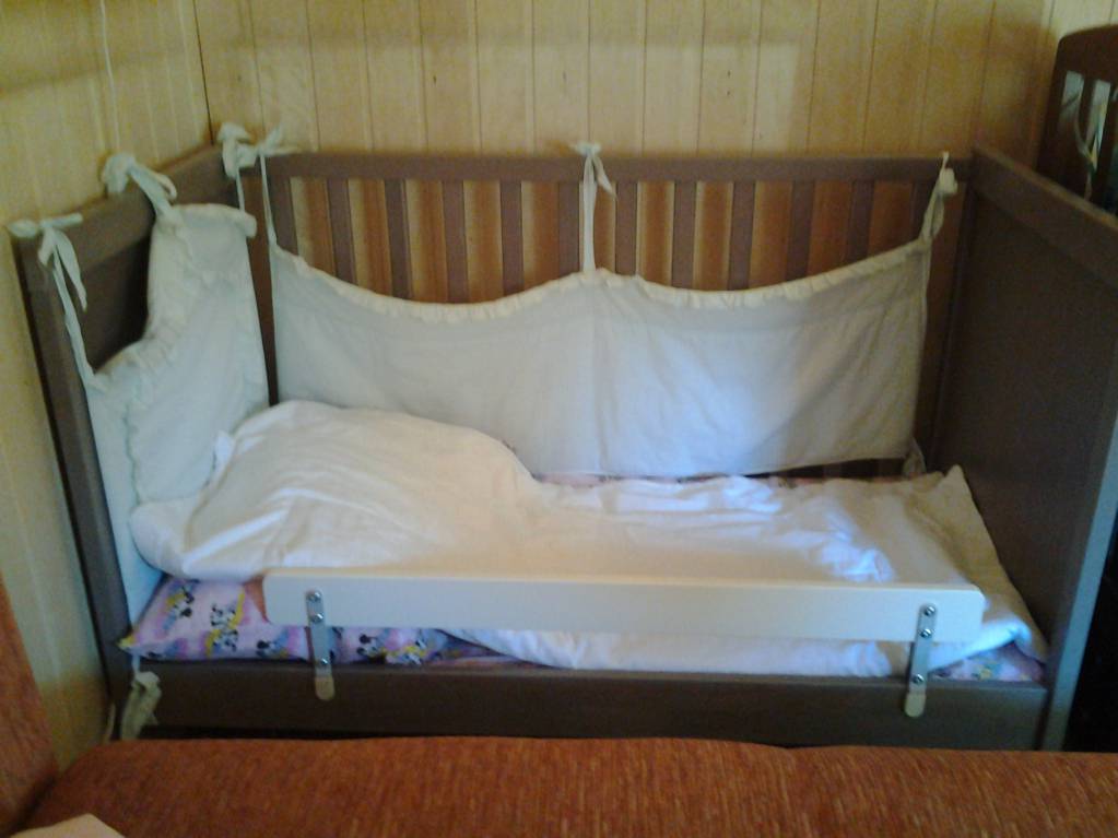 Детская кровать IKEA СУНДВИК. Фактически новая, т.к. купили ее только для дачи и использовали меньше месяца. Размер: 60x120 см. Наиболее предпочтительна для ребенка старше 1,5 лет, т.к. в этом возрасте малыш уже довольно активный и, перелезая через высокую боковину, может упасть и травмироваться. Поэтому одна из решетчатых боковин была сразу снята (ее нет) и заменена на новый, абсолютно безопасный, бортик ИКЕА ВИКАРЕ, он пониже (отдельно стоил 800 рублей), для того, чтобы ребенок мог самостоятельно вылезать из кроватки. Мягкие бортики по бокам идут в подарок. Цена в магазине только одной такой кровати - 7000 рублей. Отдам за 2 упаковки памперсов. Кого заинтересует, оставляйте контактный телефон.