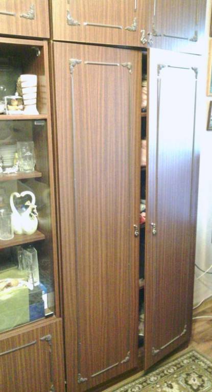 Есть 2 шкафа (бельевой и для одежды), книжный шкаф, тумбочка и книжные полки.
