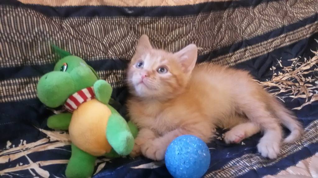 Остался мальчик рыжий- персиковый с голубыми глазами. Очень забавный. Любит общение с человеком, ласковый. Отлично ладит с кошками и собаками.