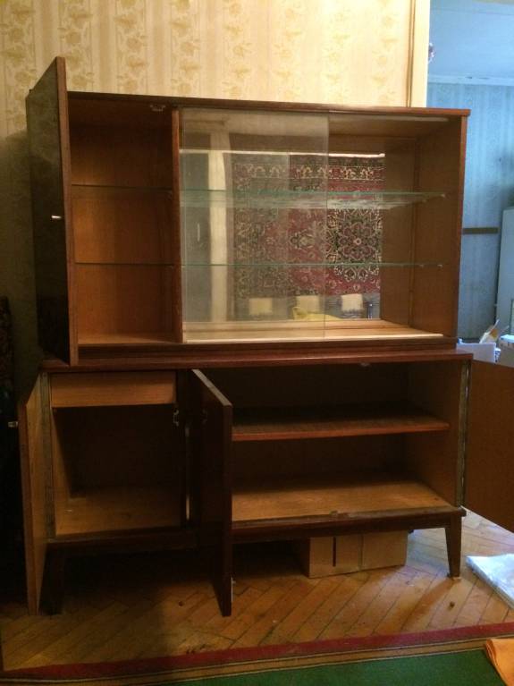 В связи с переездом очень срочно отдам шкаф-сервант с большим количеством полок для хранения.