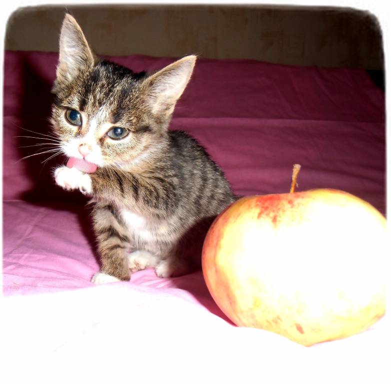 Котенок показан вет. врачу. Обработан от блох и глистов (2 раза). Здоров. Вот фото в возрасте 1 мес.