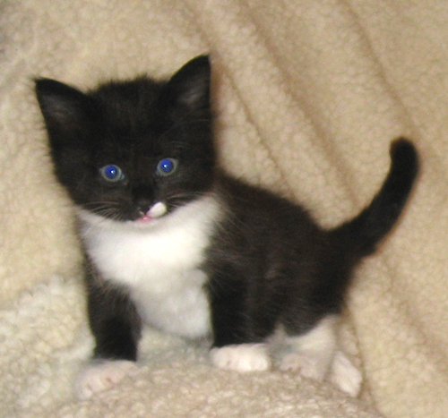 Котята (мальчик и девочка) от домашней кошки Муси, смышленые, к лотку приучены, 1,5 месяца. Отдадим в добрые руки. Окрас черно-белый (похож на фрак)
