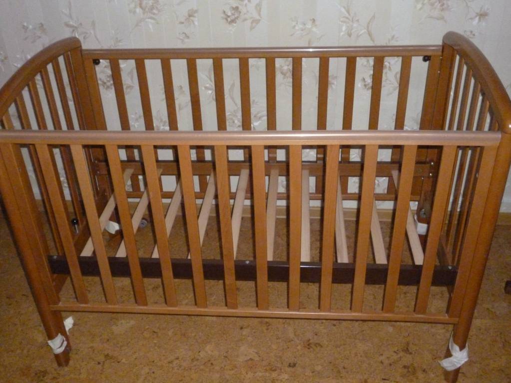 Состояние хорошее , бук покрытый лаком, на бортиках силиконовые накладки, выдвижной ящик для белья, маятниковый механизм укачивания ( на фото: собрана не полностью, ящик и механизм для качания не установлен), передний бортик опускается.