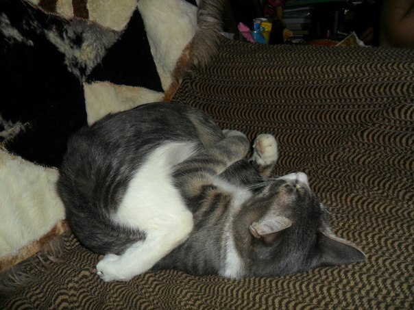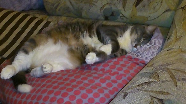 Моя пушишка сама поздравилась:)))Стащила со стола кусок горбуши бутербродной:))) Теперь всю ночь будет на водопой бегать и на лоток:))) Люблю эту паршивочку :)