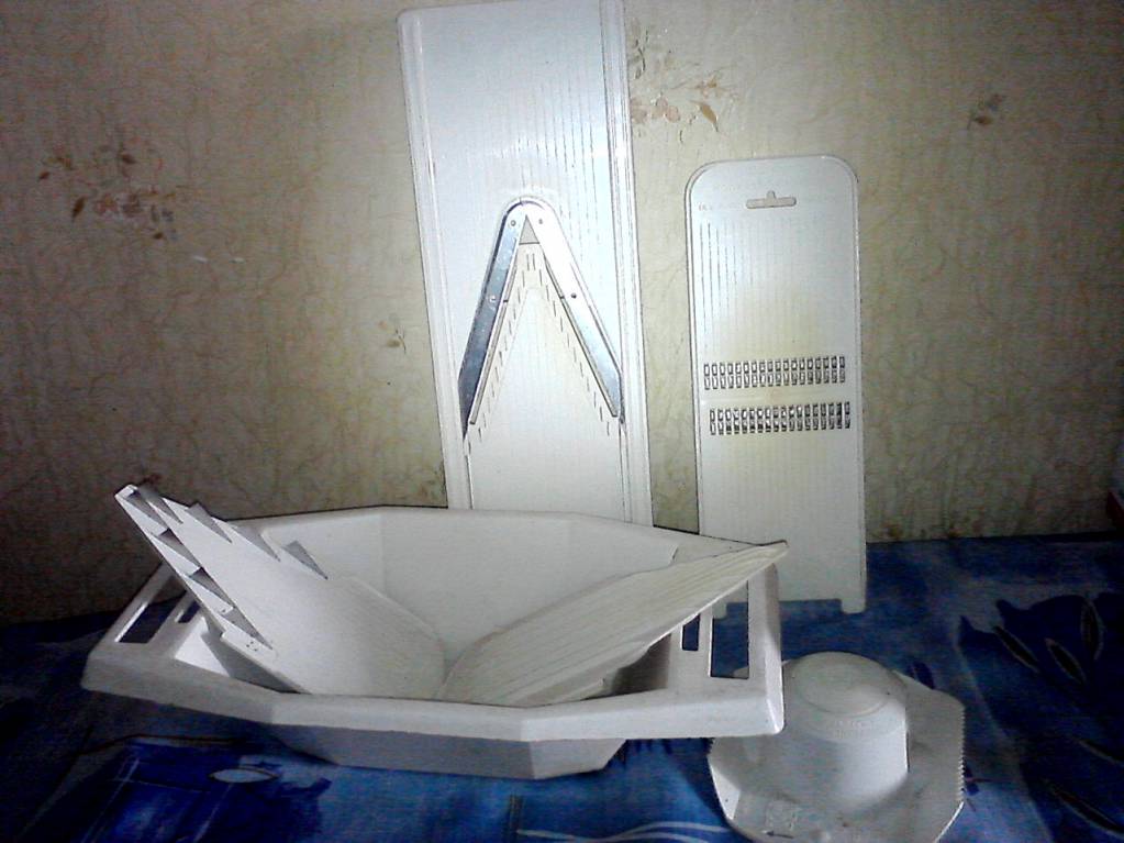 Отдам набор терок б\у и устройство для шинковки лука (ни разу не пользовалась )