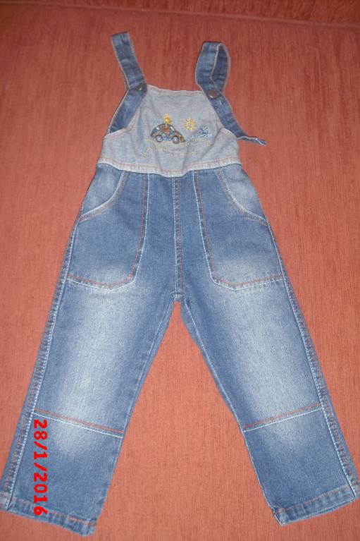 Отдам джинсовый полукомбинезон новый, одевали один раз, на р-р 80-86, на худенького мальчика,т.к. нет пуговиц по бокам.