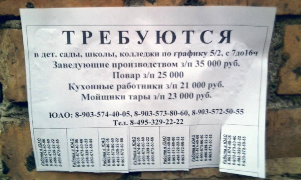 Гуляла сейчас с собакой и увидела объявление о работе. По всему нашему району расклеены.