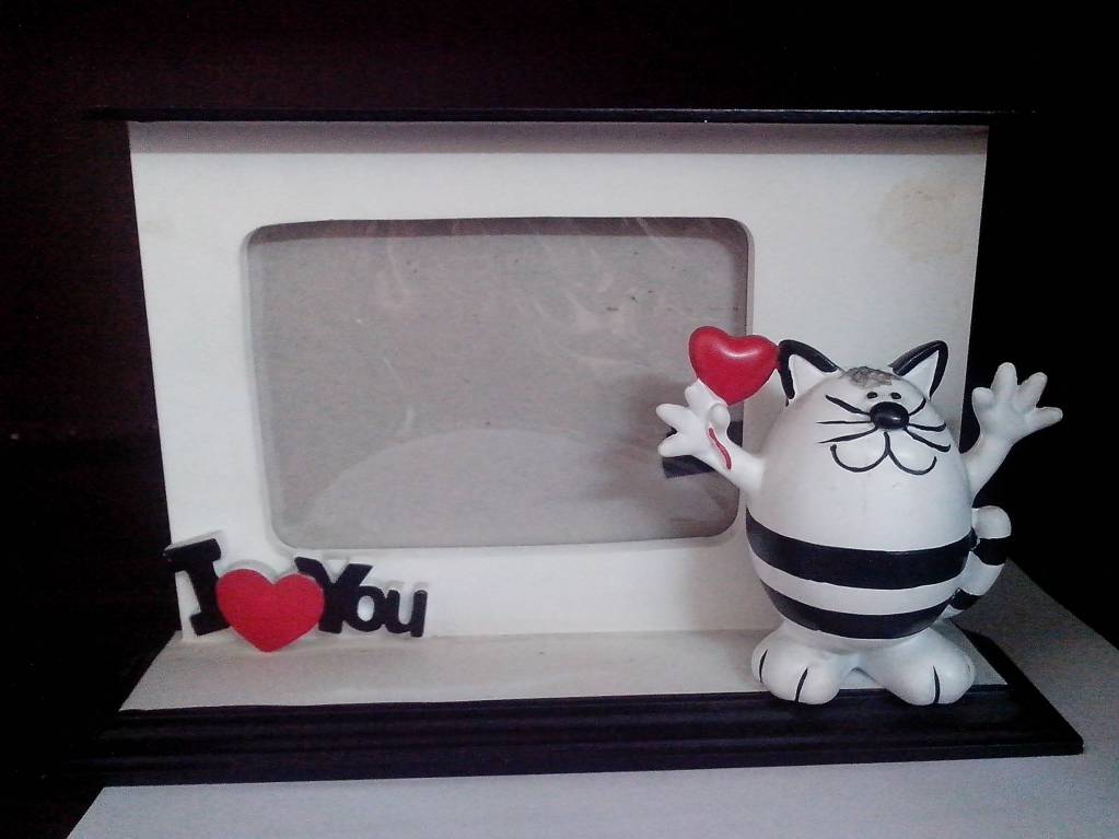 Отдам рамку для фото "Влюбленный кот", крашеное дерево, картон, пленка. Обращаться в личку.