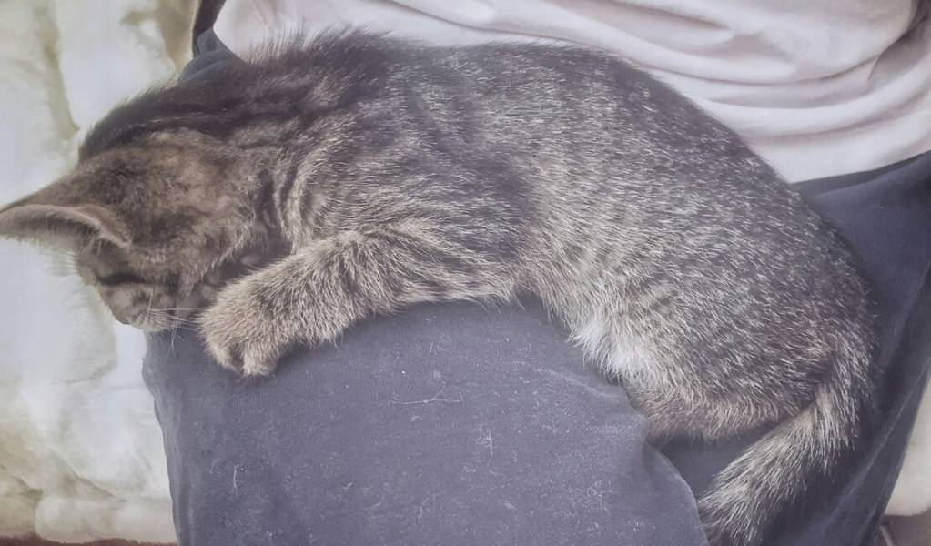 Пришли домой. Я в истерику. Душа плачет. Сколько раз было таких историй. Что, всех домой тащить.. Но пошла. Вышла на крыльцо. Стою тихонько. Он головку поднял. И пошел ко мне. Рядом сел. Я ему руку протянула. Он лапками ухватился и мы пошли. На балконе постелила. Горшочек сделала с наполнителем. Сразу в него сходил. Котенок замечательный, но у нас уже есть кот и собака.