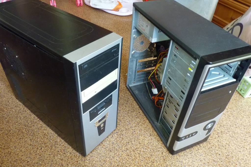На фото слева системный блок с закрытыми боками. Рабочий. Установлен виндоус ХР AMD Processor 3000+ 1,89 ГГц, 1,21 ГБ ОЗУ, жесткий диск на 40 ГБ, есть сд/двд-ром. Установлены всякие программы, МС офис, браузеры и тд. Для работы и учебы с выходом в интернет подойдет. Мощные он-лайн стрелялки может не потянуть. Отдам за 1000 руб.