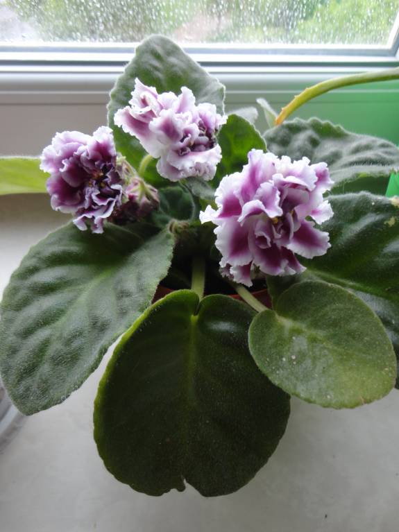 - первый гофрированные листья и розово-лиловые цветки (не махровые);