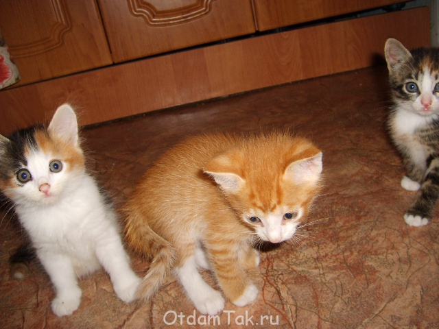 Мы с мужем забрали беременную кошку у бабушки, которая хотела ее усыпить вместе с еще неродившимися котятатами. РОдилось шесть замечательных детишек: рыжий и черно-белый - мальчики, трехцветные (белый, рыжий, черный) и серый - девочки. К сожалению, не можем оставить их всех у себя в квартире, надеемся пристроить в добрые руки. Котята симпатичные, очень милые, забавные. Приучены к лотку. Полностью здоровы. Им только-только исполнился один месяц.
