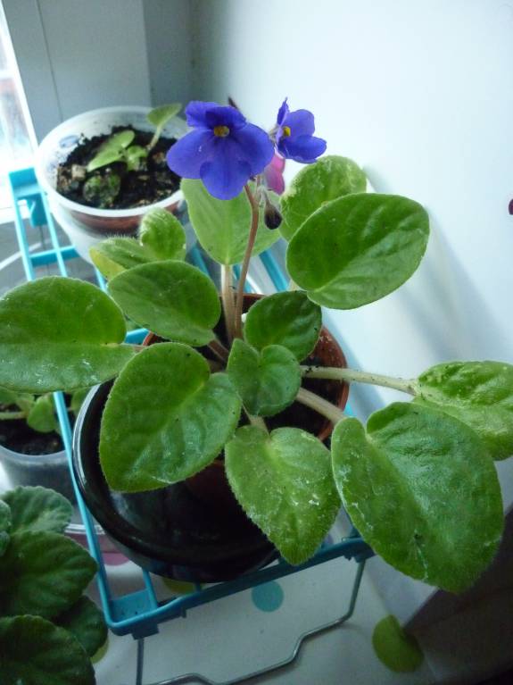 Отдам 2-е фиолетовые фиалки, цветущие в горшке, с землёй.