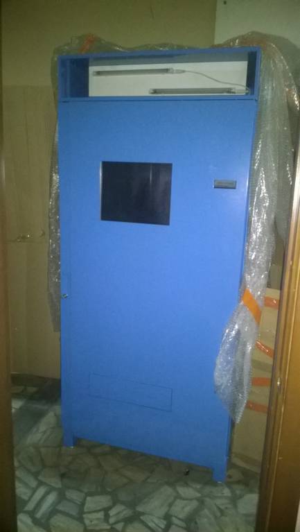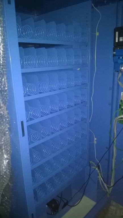 Совсем новый торговый аппарат ....ещё даже не обклеен рекламой. Сенсорный экран...64 ячейки...можно отслеживать продажи не выходя из дома... через интернет. Предназначался для продажи сувенирной продукции...обошёлся нам в 450000руб. К сожалению в связи с кризисом так и не смогли его поставить для торговли.
