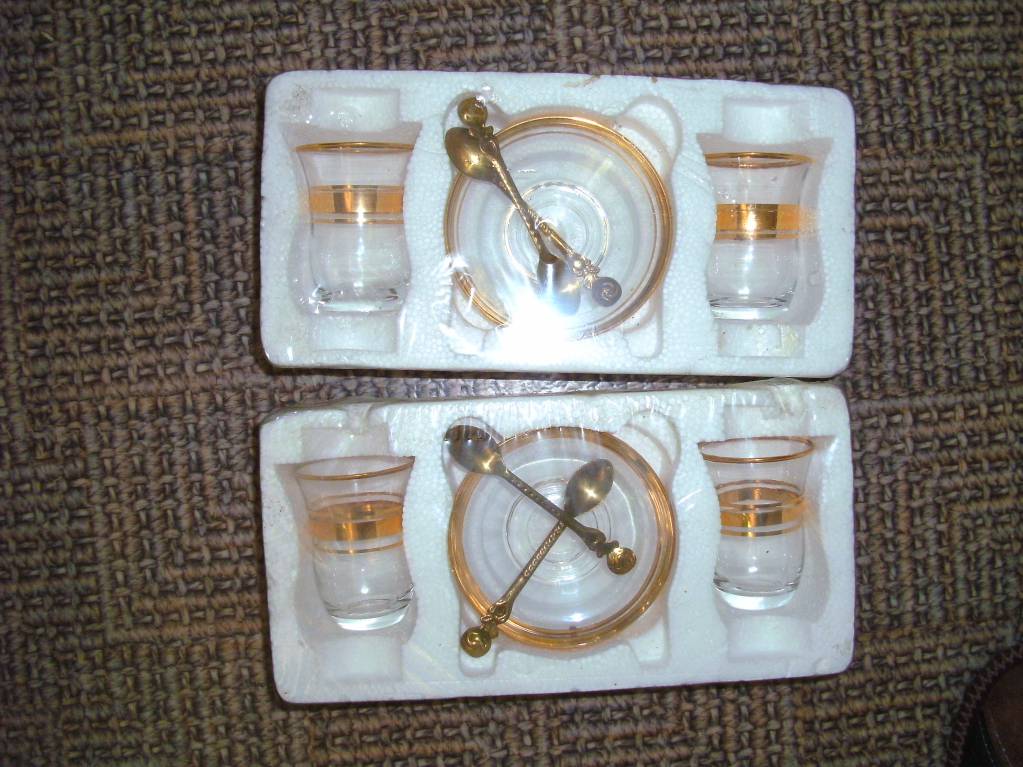 Комплекты для чая. 4 стаканчика + 4 блюдца + 4 ложечки. Хорошо для подарка и для себя. Отдам бесплатно за что-нибудь с вашего огорода (сезонные фрукты, ягоды...). Мой тел\вабер: 8-926-227-6474