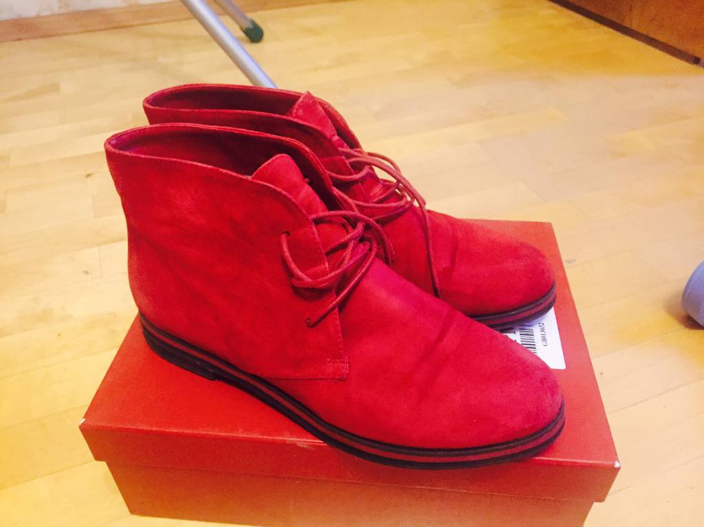 Отдам за сок или цветок ботиночки красные замшевые в хорошем состоянии, но набойки на пяточках лучше бы сделать.