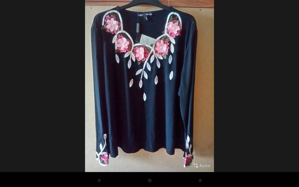 1. Блузку черную со вставкой из сеточки или фатина на груди и нежными цветами. 64 размер. 500 рублей.