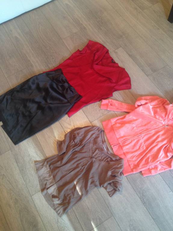 юбка-карандаш, несколько кофточек, черные брюки, платье до колена на брительках