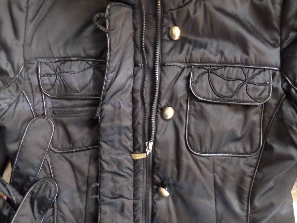 Красивого черного цвета,много карманов,даже есть карман внутри курточки! Поясок прилагается.