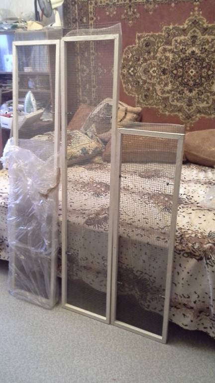 На первой фотографии сетки "кверху ногами", на самом деле размер рамки немного короче проема окна (чтобы окно могло свободно закрываться), внизу еще есть небольшой запас сетки.