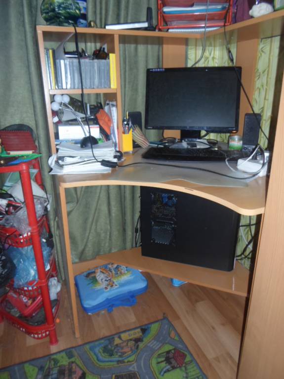Есть подставка для системного блока и полочка дополнительная над системником. Есть приспособления для дисков.