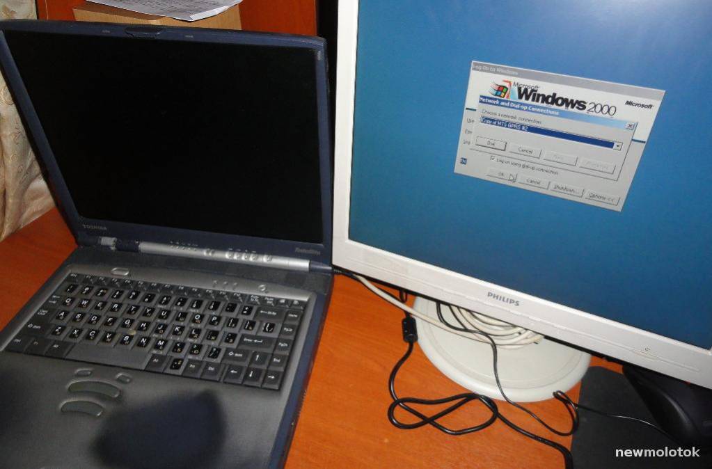 Ноут включается -Но экран темный -нет подсветки,подключал внешний монитор изображение есть на выходе,но не смог дальше посмотреть т.к. стоит пароль для входа в систему ОС Windows 2000.