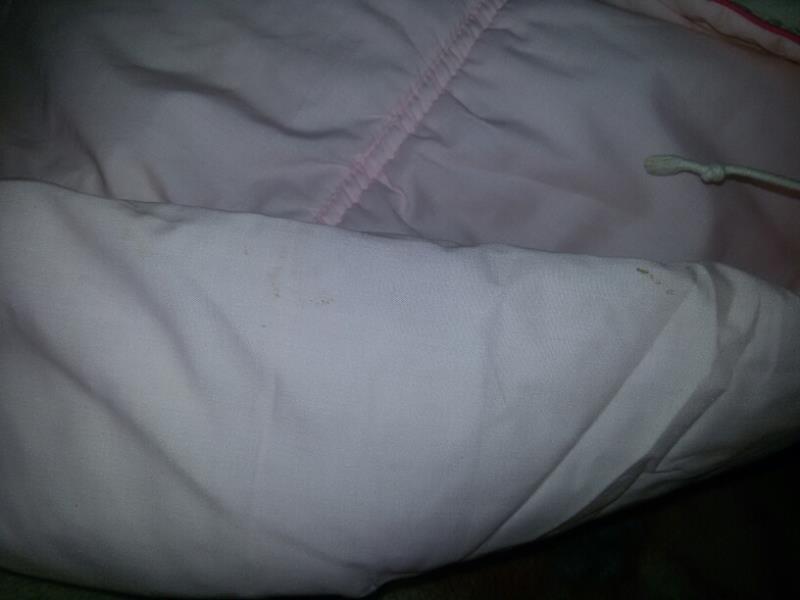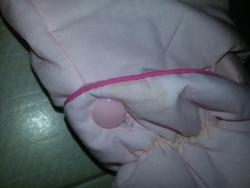Комбез новый с этикеткой, но пролежал в шкафу долго и появились желтоватые пятна на ботиночке (фото 3) и на рукаве (фото 2). Отстирывать не пробывала. Варежки и ботиночки отстегиваются. Длина от горла 75; рукав от горла 41(включая варежку); ширина 37