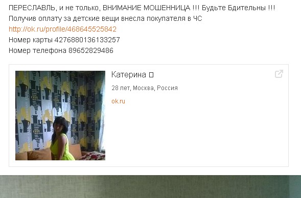 В сети появилась мошенница которая выкладывает разные лекарства и продаёт вещи! после перевода денег на карту,не берёт трубку или посылает!её муж Александр тоже при делах! Кидают в основном детей и больных людей!
