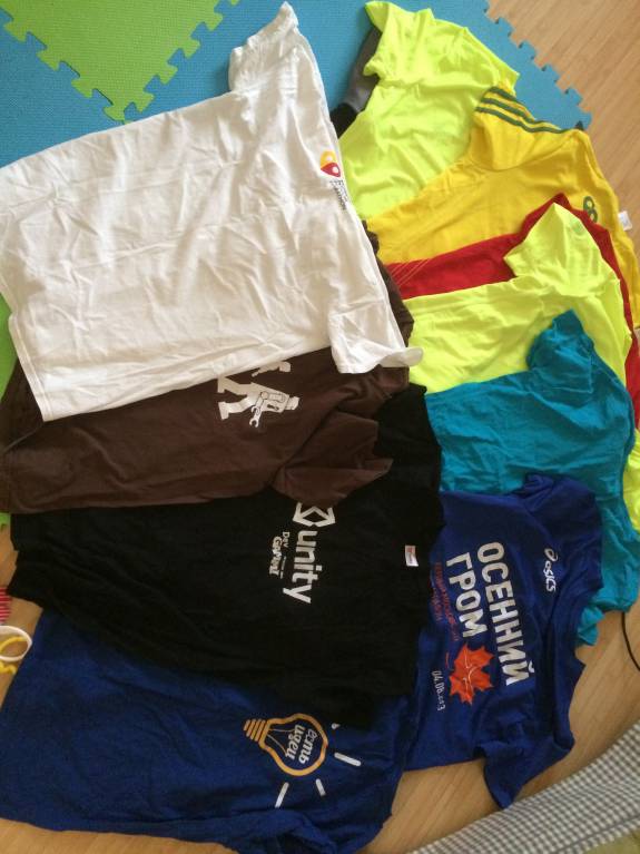 Футболоки размера S (42/44). Половина спортивных, половина обычных хб. Всего 14 штук