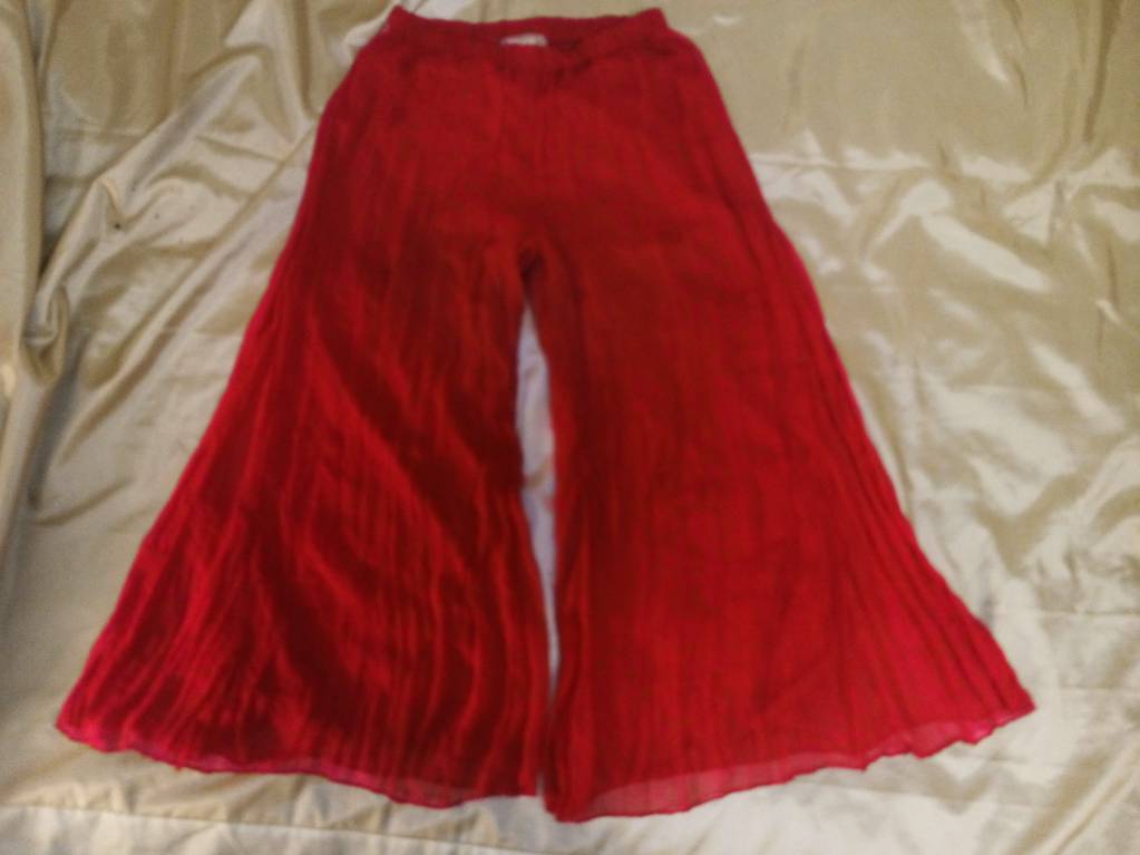 Брюки очень классные, на резинке, подходят практически на любой размер бедер. Длина под маленький рост (по длине брюки 85 см). Материал полиэстер.