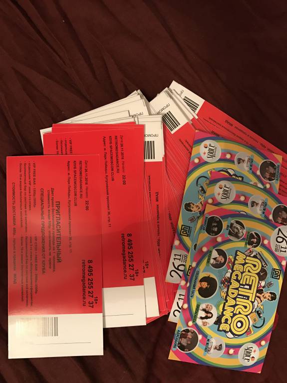 Отдам даром билеты на RETROMEGADANCE в Space Moscow 26.11.2016 в 22:00. Коллисество ограничено. 89632100049. Звоните, пишите