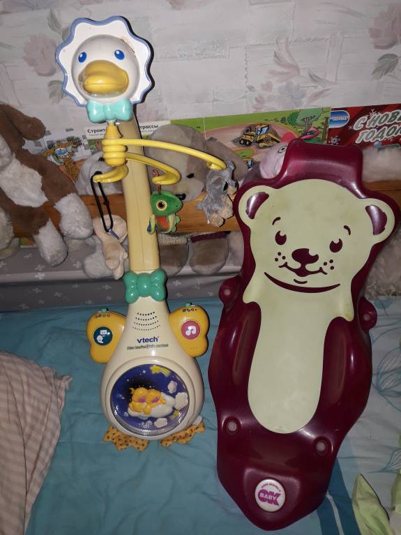 .кроватка качалка в хорошем состоянии.мобиль 3 в1 на кроватку "матушка гусыня".различные игрушки погремушки до года.также немножко вещей на 2_3 года.забирать метро красногвардейская.звоните 89670082836