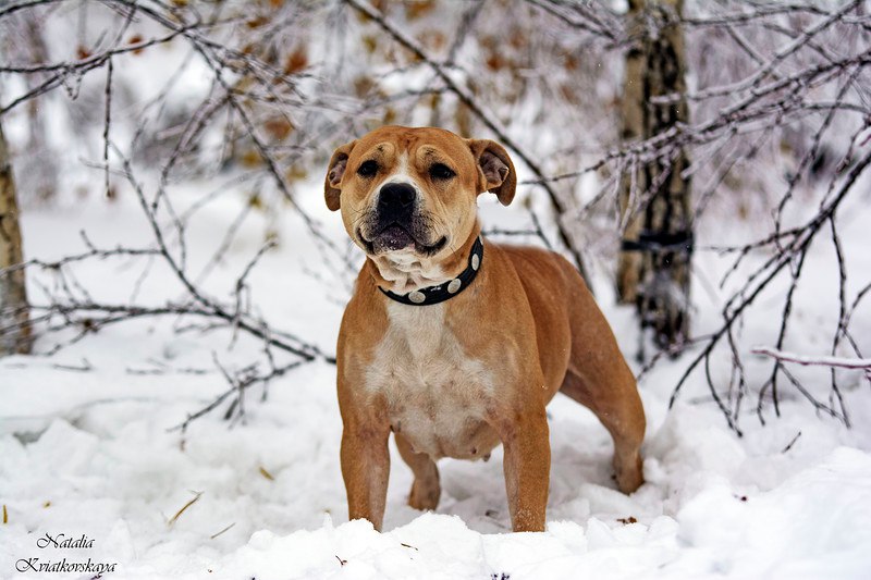У нас в семье тоже был стафф точно такого же окраса, подобрашка. Мальчик, редкий умник, охранник от Бога, никого не обидел ни разу. После него уже не на бойцовские породы не глядим. Шерсть короткая, собака не огромная, но сильная, умная, любящая хозяев. Взяли из приюта суку питбуля, метис, она с двухлетней внучкой так играла, все её выкрутасы терпела, ни разу даже не вякнула. Тоже умница, красавица, сама доброта.