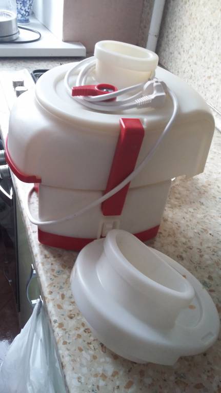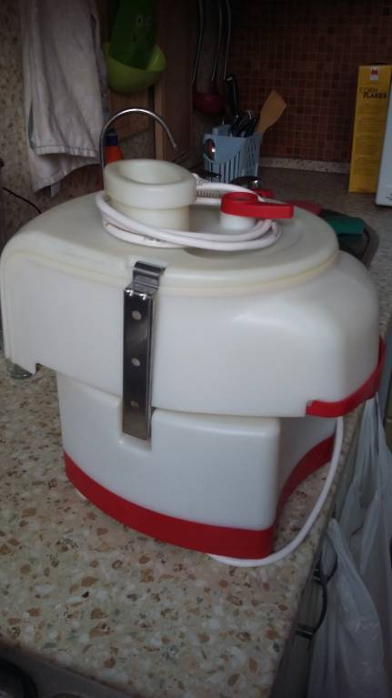 Машина-зверь. В рабочем состоянии. Подходит для выжимания сока из твердых овощей и фруктов. Одно крепежное устройство отвалилось, поэтому при работе нужно придерживать, чтобы крышка не открылась. Вполне подойдет как неубиваемый дачный вариант. Есть еще функция овощерезки, но ею никогда не пользовались