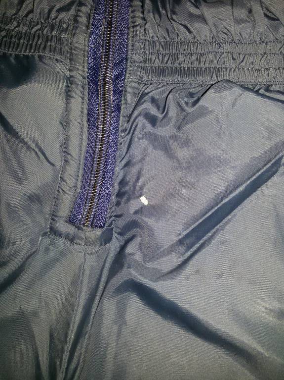 Есть недочеты - дырочка спереди и колены слегка подвытерты (фото 2 и 3), а так ещё крепкий- гулять и гулять в нём