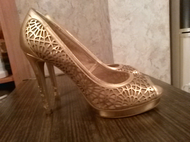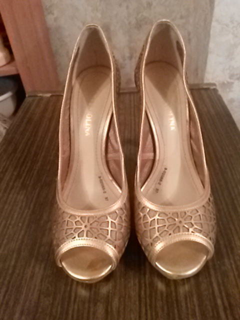 Купила себе пару лет назад вот такие золотые туфельки за 4 500 рэ. Продавались, как кожаные, сделано в Бразилии.