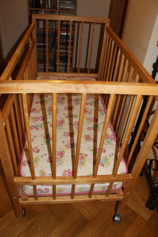 Отдам даром деревянную детскую кроватку в хорошем состоянии. Матрац можно закрепить в 2 положениях (повыше для маленького ребенка и пониже), с одной стороны бортик можно откидывать(удобно брать ребенка), на колесиках, без механизма укачивания. Матрац пружинный со съемным чехлом. Самовывоз из Звенигорода.