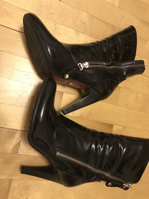 На сапожках новые набойки, но есть небольшая трещина на сгибе в лаковом покрытии