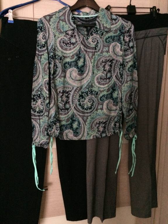 Отдам брюки для беременных р-р 42-44: серые тонкие, чёрные утеплённые, прямые по фасону (не зауженные), блузка, все в отличном состоянии. Пишите WhatsApp, Viber.
