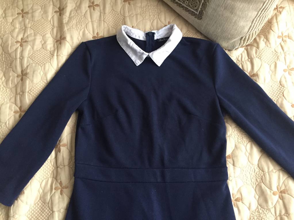 Абсолютно новое,красивое,фирменное,прекрасный вариант для школы,работы,института (где требуется дресс-код) . Красивый белый воротничок,темно-синий цвет,длинное,на молнии,молния работает прекрасно!