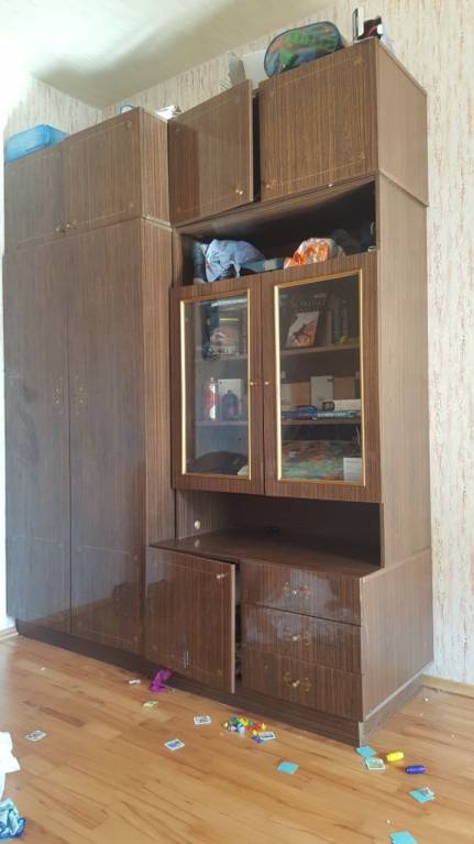 Два шкафа, платяной и книжный. И два верхних ящика. В хорошем состоянии.
