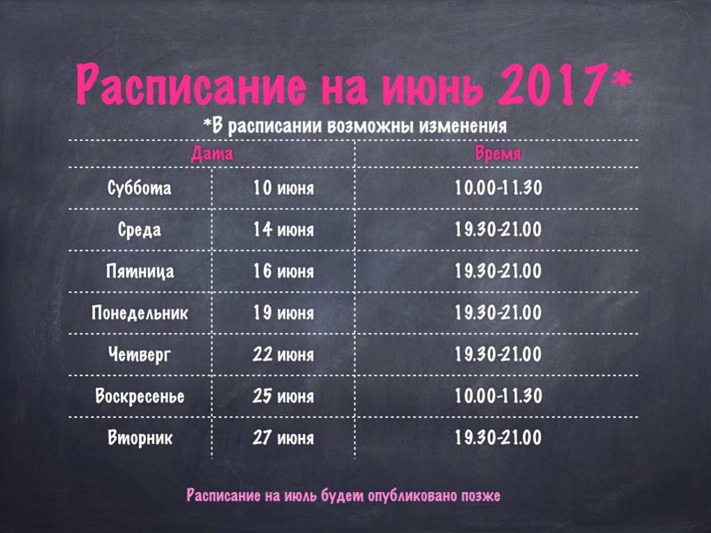 Расписание на июнь: