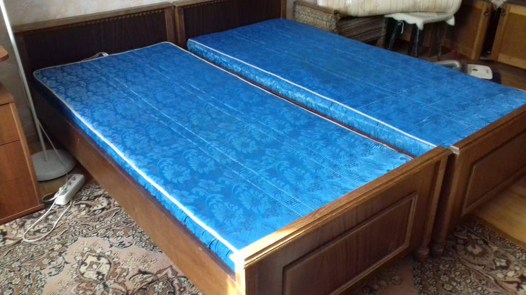 Всем доброго дня! Кровати полуторные. Размер каждой 197×92. Болгарский шпонированный спальный гарнитур. Ортопедический матрас. Не скрипят. К ним есть 2 прикроватные тумбочки, трюмо и шкаф-бар. Шкаф отдаю через 4 месяца (как закончу ремонт).Самовывоз из Старых Химок. +79252662257