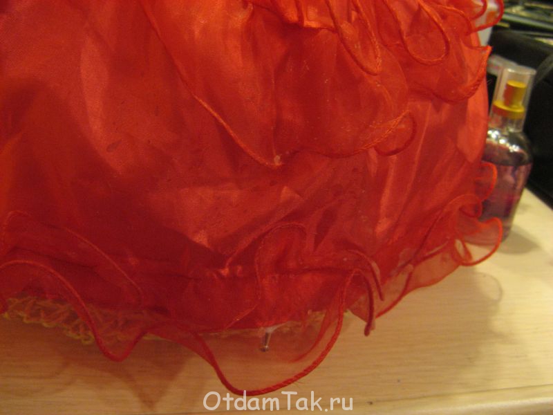 Немного забрызган воском подол платья. См. фото